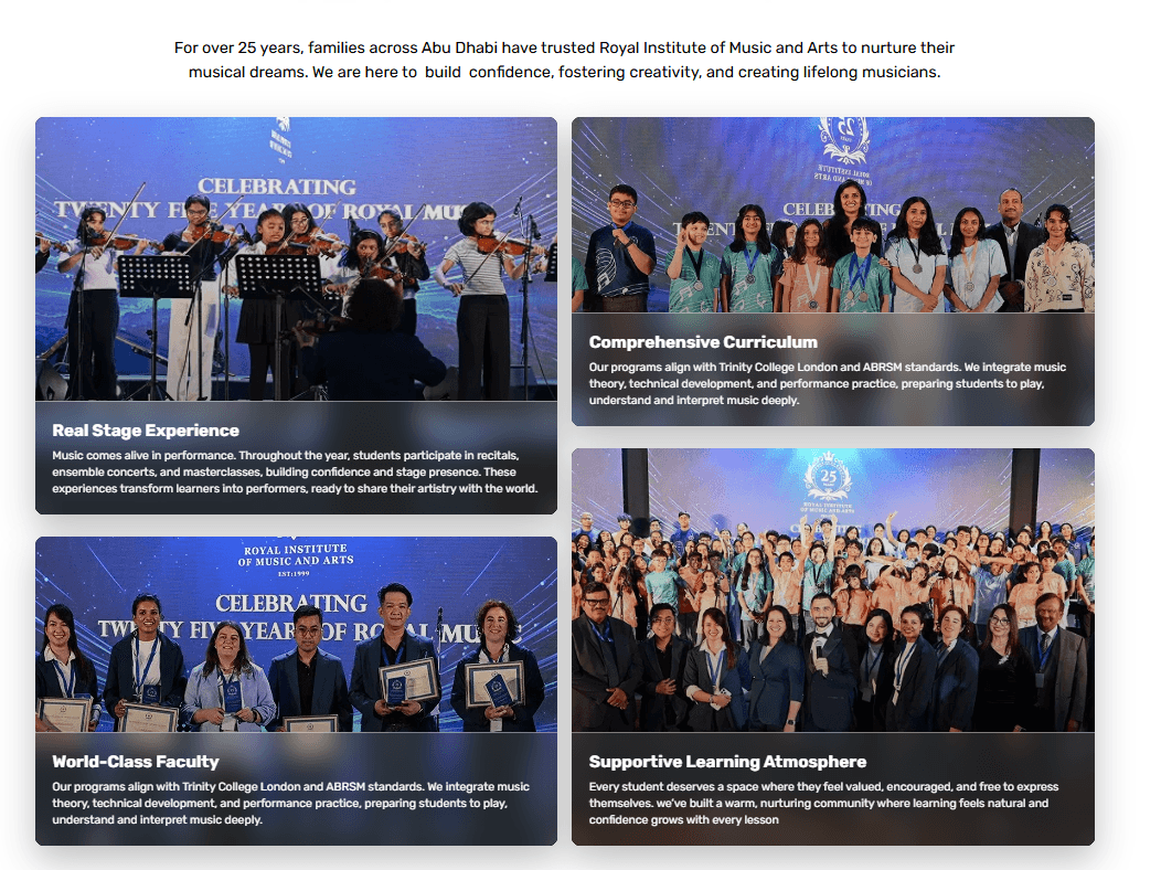 By studying the school’s audience, teaching philosophy, and long-term vision, I ensured that the vibrant visuals remained structured, trustworthy, and easy to navigate, resulting in a design direction that felt both engaging and authentic to the brand.