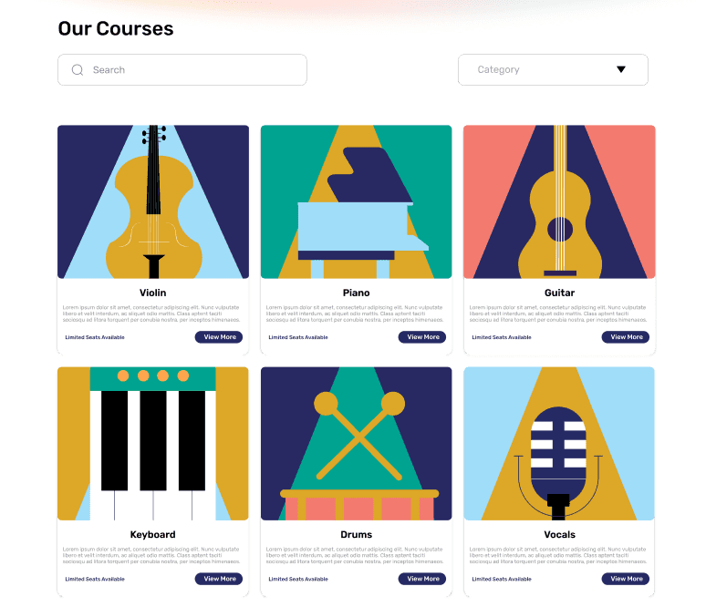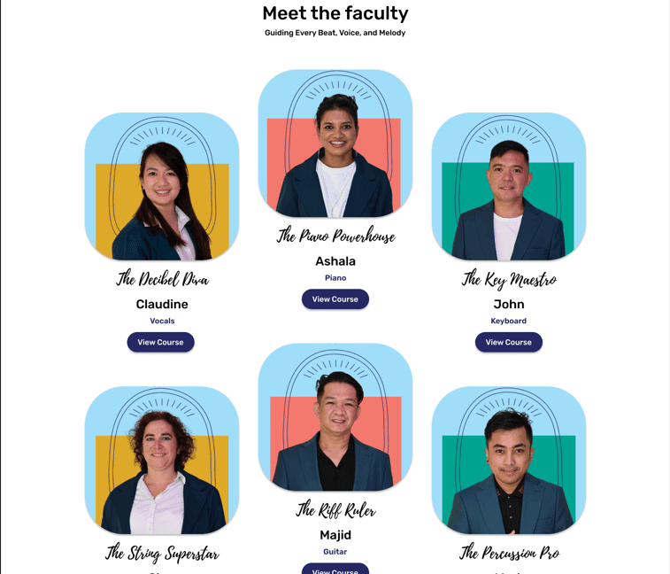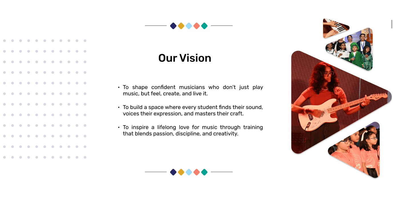 A significant part of the research involved exploring design inspiration from music schools, creative learning platforms, and youth-focused brands to understand how color, layout, and visual storytelling can express energy and creativity.